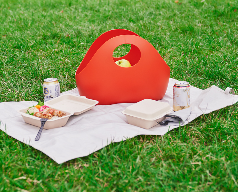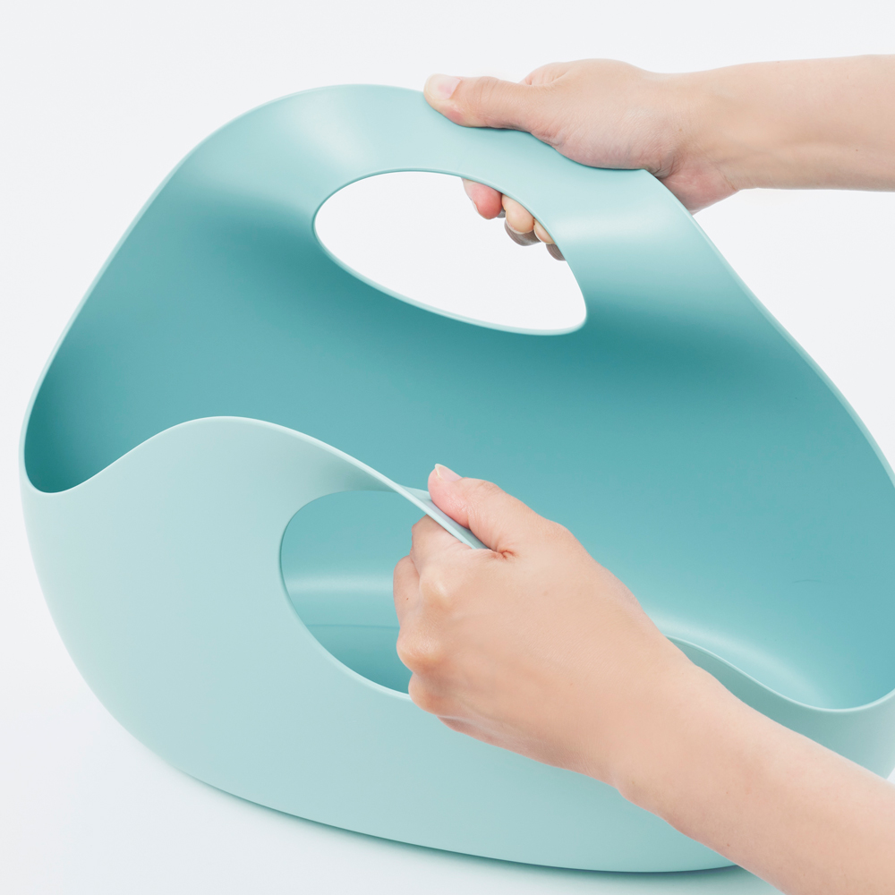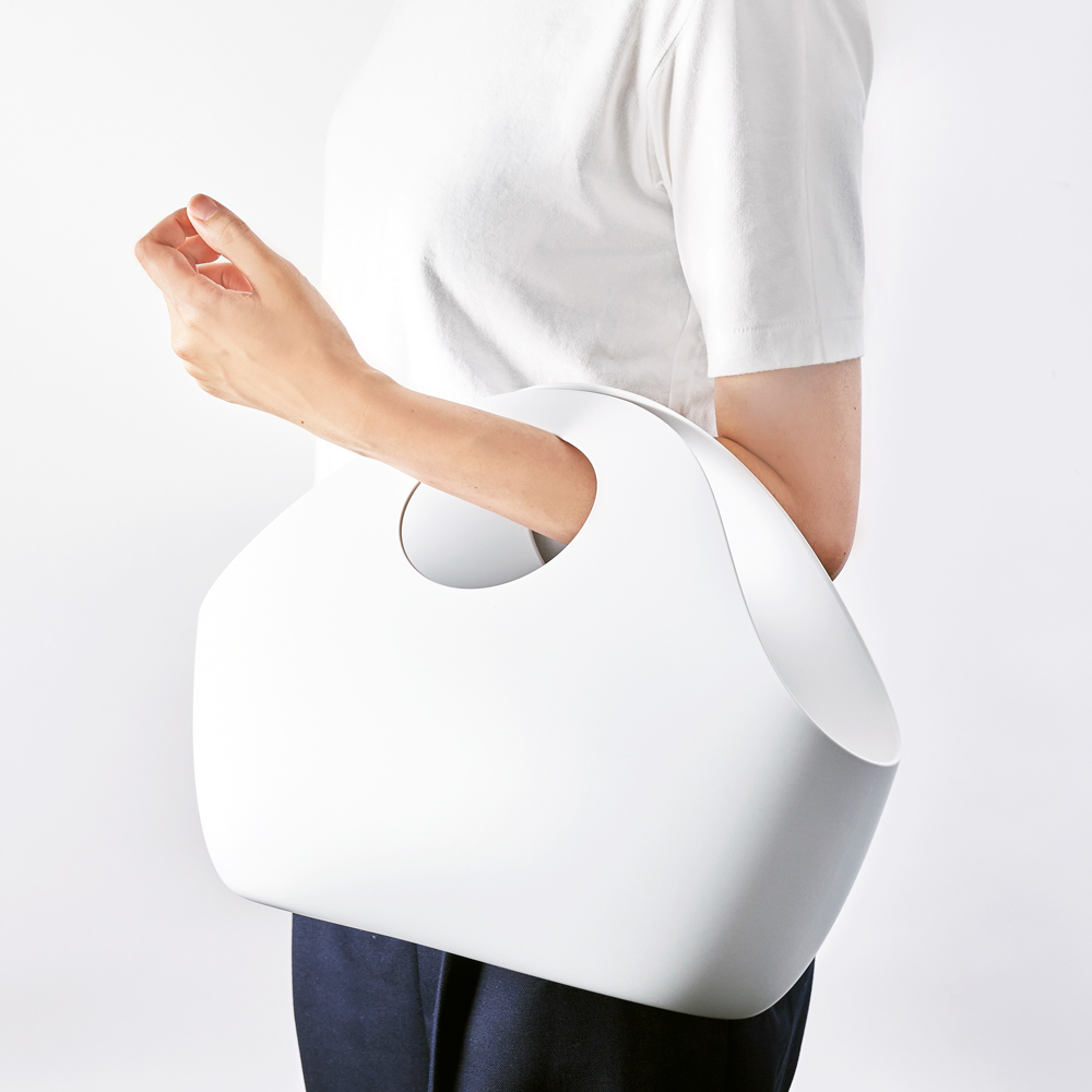 やわらかな樹脂製で、持ち手部分が内側に収まるため、中身が見えにくくなっています。