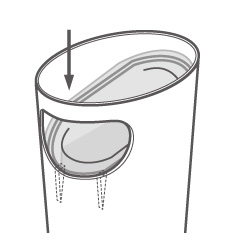 袋止めを内面リブにあて、斜めに落し込みます。