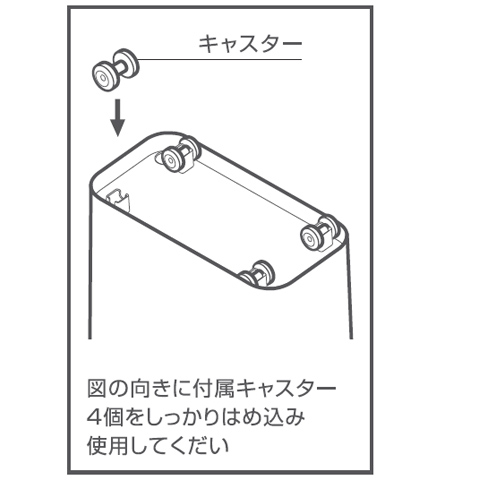 - キャスターを取り付けず引きずったり、乱暴な設置をしないでください。本品の破損や床にキズがつく恐れがあります。