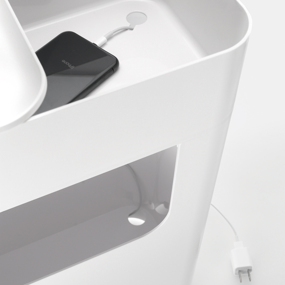 - 本体の中で携帯電話、ポータブル機器等を充電しないでください。異常な発熱や発火の恐れがあります。