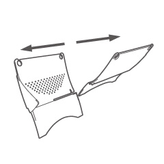 完全に開いた状態で、横方向にスライドしてはずします。組み立てる時は、カチッと音がするまでしっかり差し込みます。