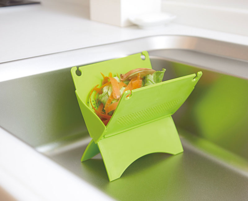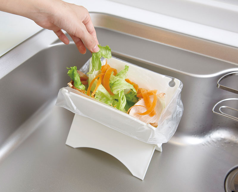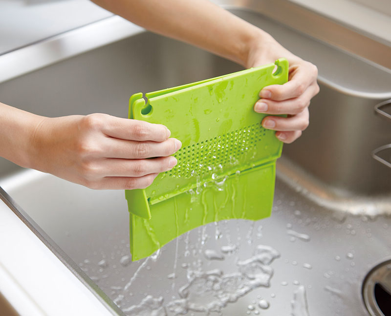 水切り上部を両手でしっかりとつかみ少しずつ力を加えて水を切ります。