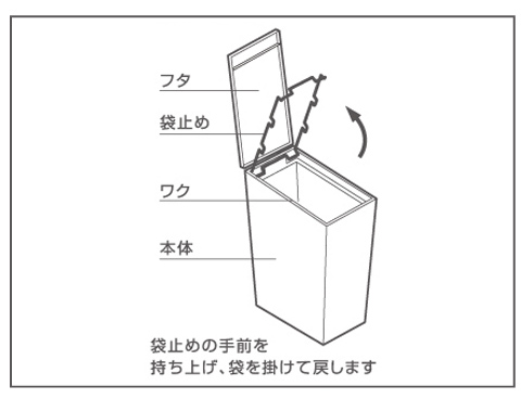 - 屋内用のゴミ容器です。用途以外に使用しないでください。
