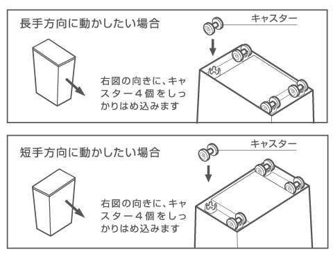 底面のキャスターは目立たず、使い方に応じて向きを変えられます。