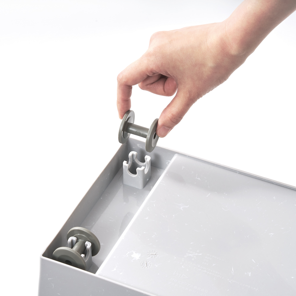 - 持ち上げる際は、本体を両手で持ってください。フタ、ワクを持つと、本体とワクが外れて落下し、床をキズつけたり、怪我の恐れがあります。