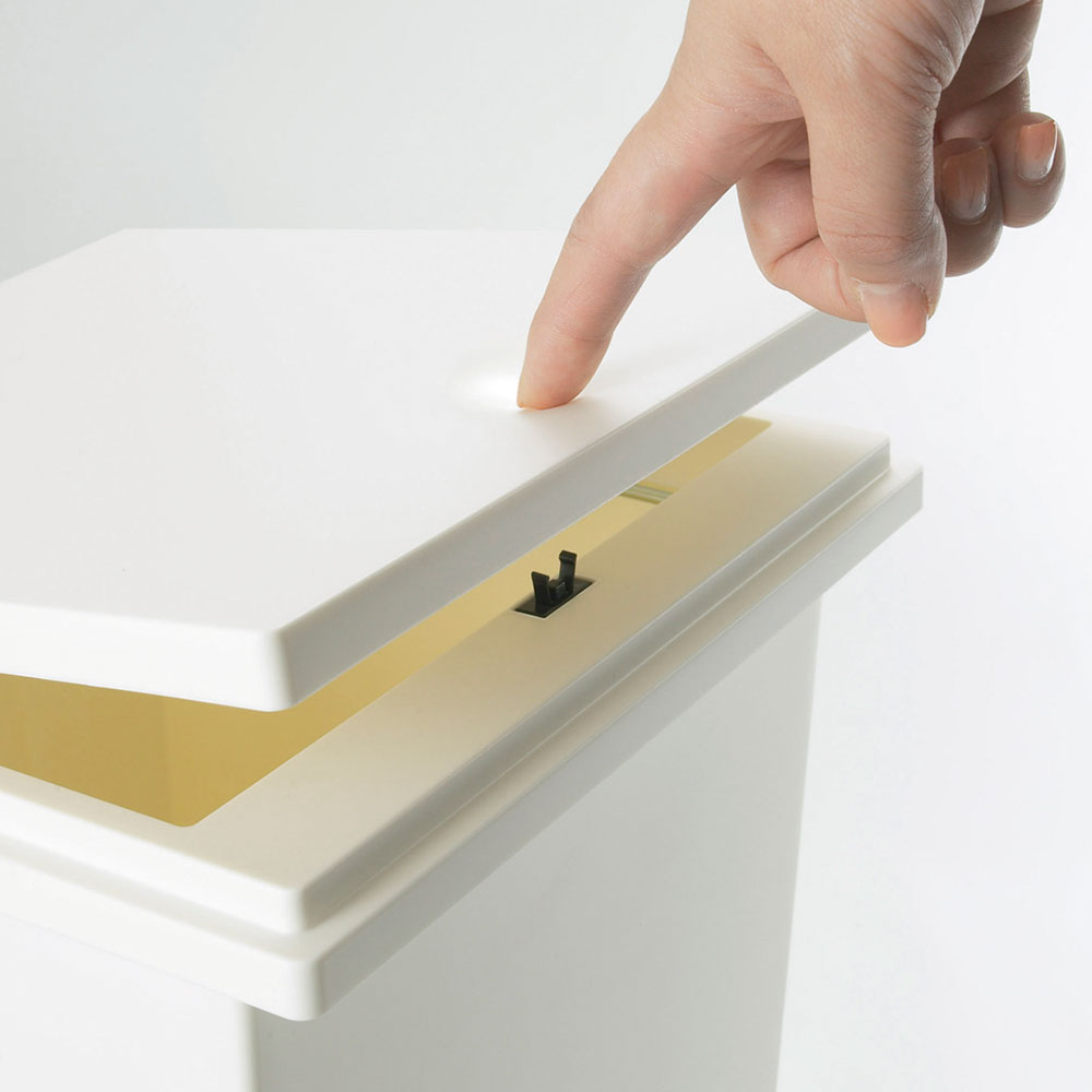 前後に並べた時にも上から開けやすいプッシュ開閉式。