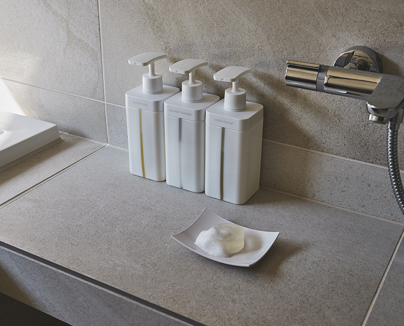 大きなポンプヘッドで押しやすいディスペンサーと、