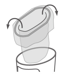 袋止めを内面リブにあて、斜めに落し込みます。