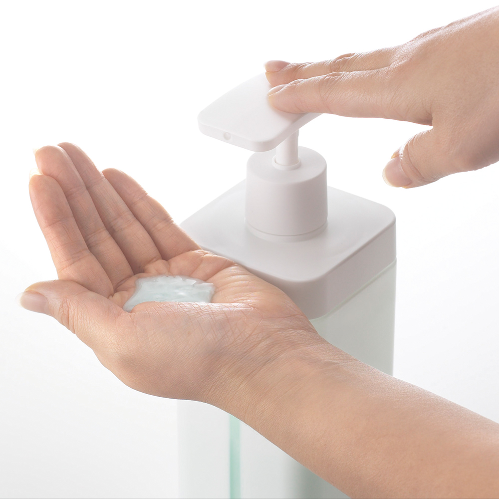 大きなポンプヘッドで押しやすいディスペンサーと、