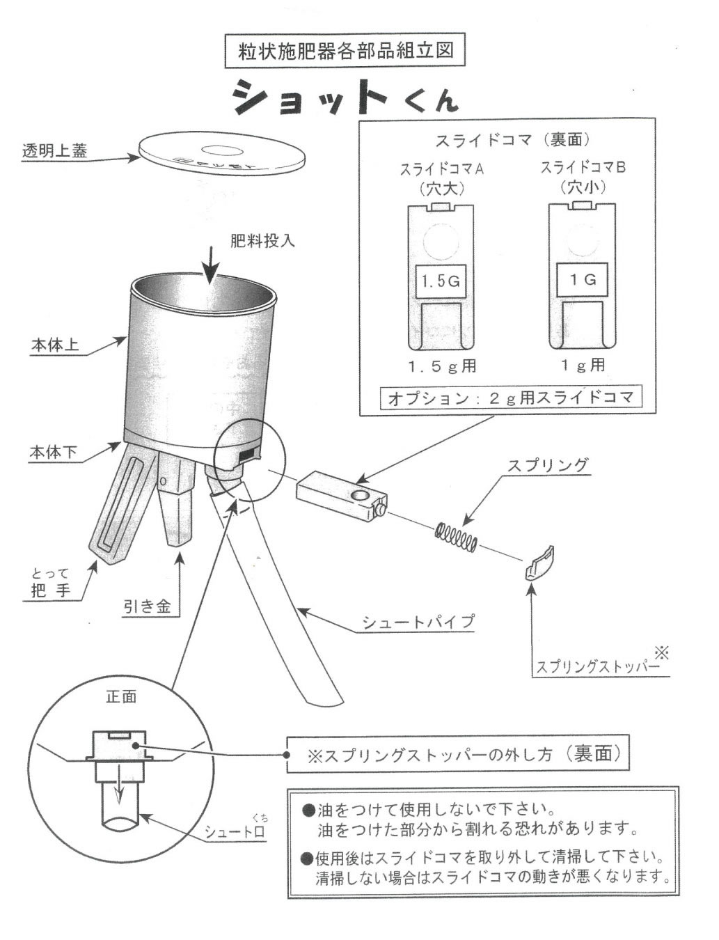 - 専用スライドコマの交換で施肥量を簡単に切換えできます。